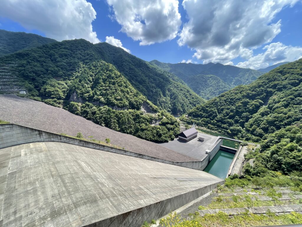 実際に目の前にすると、写真や数字以上の迫力を体感できます。巨大な堤体は壁のようにそびえ立ち、そのスケールに圧倒されました。